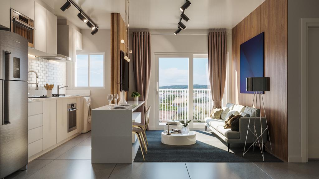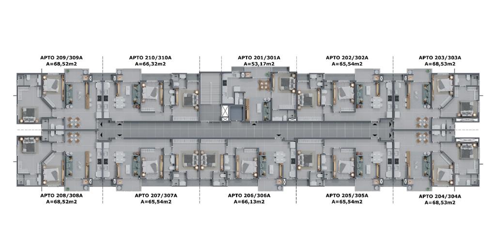 Opções da apartamentos com 01 e 02 dormitórios, lavabo social, suítes grandes e banheiros com ventilação natural